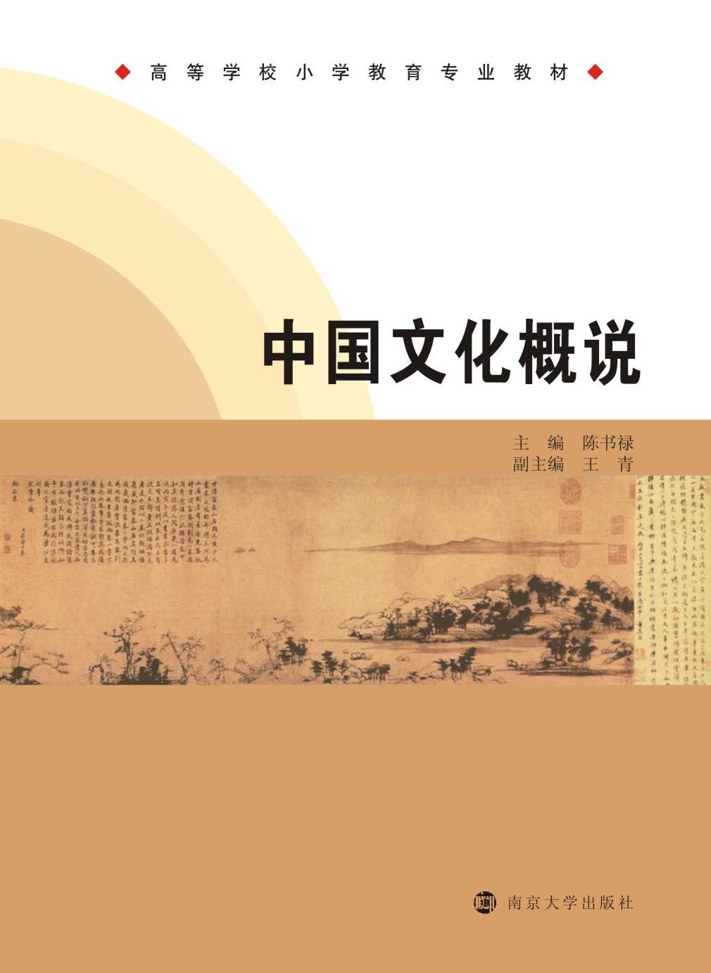 中国文化概说 系列名:高等学校小学教育专业教材 作者:陈书禄 主编 定价:32 本书为高等学校中国文化课的教材。主要包括:中国文化形成的背景及主要来源(儒家、道家、佛教文化);古代政治、经济、文化、科技制度;中国的语言文字、文学、艺术;中国...